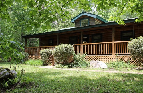 Fern Garden is a 1,400 square foot cabin in the Clifftops gated community in Monteagle, TN. This quiet cabin is 5 miles from the entrance and .75 miles from the lake. It is a log cabin with open floor plan. Living, dining and kitchen areas in the main area with two side bedrooms. (master bedroom with bath and one guest room) The cabin sleeps 6 maximum (one fold out sofa). The cabin has wi-fi and a land line, TV with DVD player, and YouTubeTV.