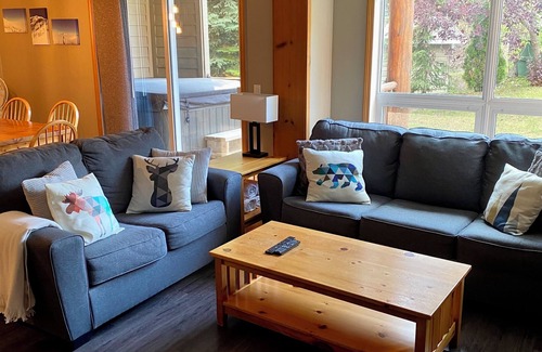 **Aug.2025 Due to work on exterior of condo the deck and hot tub are unavailable at this time.** You will love this cozy, home base at Fernie Alpine Resort. A short walk to resort amenities and ski right to your door. There are two bedrooms and two bathrooms The main bedroom has a queen bed and full bathroom, and the second bedroom has a twin over queen bunk bed. Cook in your full kitchen with new appliances in an open living plan and then relax by the fireplace or in your private hot tub..