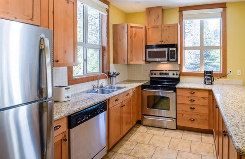 Located in the Juniper building, this 2 bedroom, 2 bathroom end unit condo features a private 4 person hot tub on the patio. Situated on the 2nd level, enjoy granite counter tops, stainless appliances and a leather sofa as well as in suite washer / dryer and air conditioning. Relax in the king size bed in the master bedroom, with an additional 2 x twin beds in the second bedroom as well as a sofa pullout in the living room. Perfect for a family getaway, or break with friends, you won’t be disappointed with this gorgeous suite. Guests have access to all of the amenities at Timberline Lodges including an outdoor heated pool and BBQs. Timberline Lodges is located a 5-minute walk away from the base area at Fernie Alpine Resort.