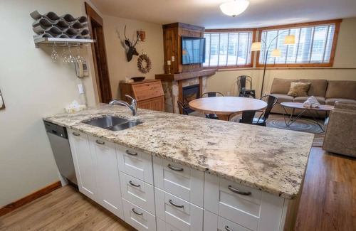 This renovated, pet-friendly condo suite is located on the lower level of Spruce Lodge in the sought-after Timberline Lodges complex at Fernie Alpine Resort. This spacious 2-bedroom suite offers accommodating for up to 9 guests with a Queen bed in the master bedroom, and a Tri-Bunk (Twin over Queen) plus a bunk bed in the second bedroom, as well as a sofa pull-out. The condo has a full kitchen with dining/living area, fireplace, free Wi-Fi and is minutes away from the restaurants and attractions at the resort village. Note this building doesn't have an elevator.