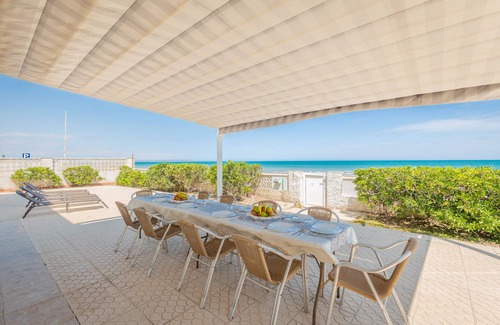 Beautiful independent villa, on the seafront in Guardamar, from the house you go out to the sand of the beach, if you like the sea, there is no better way to enjoy it, with large terraces, barbecue, from anywhere you are watching the sea As if it were a painting, it has 4 bedrooms with 4 bathrooms en suite, each bedroom has its own bathroom and capacity for 8 people.Guardamar typical Mediterranean fishing village, with its beautiful pine forest and promenade, beautiful restaurants, we recommend El Bocaito Playa, Restaurant Chema, La Cañada Playa, you can enjoy Mediterranean cuisine.There is no other place to spend a fantastic vacation on the beachfront, which can provide you with so many services, you can walk anywhere, and yet when you get home after enjoying the day you have all the comforts. In a quiet neighborhood with independent villas from neighborsIf you like to take a walk, the beach has 15 km of fine sand, and you can walk along the beach that at sunrise or sunset is a luxury to go from the accommodation to La Mata, you will discover wild beaches with its dunes, a luxury within the reach of a few privilegedAccommodation of 170 m².It has a garden, garden furniture, fenced plot, terrace, barbecue, iron, internet access (Wi-Fi), hairdryer, balcony, heat pump heating, air conditioning in some bedrooms, open-air parking in the same building, 1 TV.The independent kitchen, completely renovated in 2021 and the 4 bathrooms, all new also renovated in 2021, is equipped with a fridge, microwave, oven, freezer, washing machine, dishwasher, dishes/cutlery, kitchen utensils, coffee maker, toaster, kettle, and juicer.To facilitate your arrival, you shall receive, a few days before your arrival, a request to make an online security deposit. This security deposit won’t be debited nor impacted on your bank account. This procedure is authorized by your booking platform..