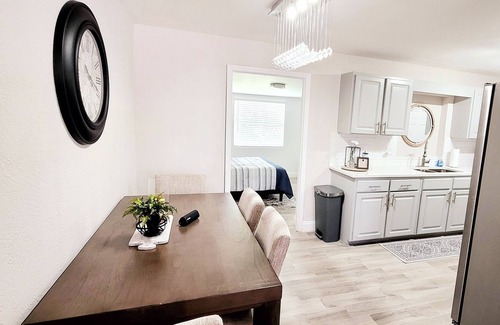 Newly renovated property with modern decor. The home has an open floor plan, 3br/2baths, private backyard, fully equipped kitchen and basic essentials provided. Spacious Backyard with gas bbq grill and fire pit to enjoy all year round. This peaceful location close proximity to shops and restaurants just 10mins away, Disney attractions appx 40 mins..