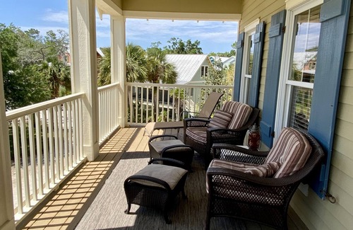the cottage - this 3-story home with a river view is great for family groups and friends The main floor is spacious and provides room for all. The large eat-in kitchen opens to the living area and breakfast bar and is perfect for socializing while preparing meals. Many upgrades - wood floors, granite counters, flat screen TVs, leather sectional. The accommodations include 3 bedrooms (king, king and 2 full beds), 3 baths, and a loft area with 4 built-in bunk beds, sleeps 10 total (all in comfortable beds, no sleeper sofas). With front porches on 3 levels guests are able to relax and enjoy the river view. House is very convenient to the pool area, chapel, conference center, petting zoo and docks. Private covered parking on ground level. No smoking and no pets please.