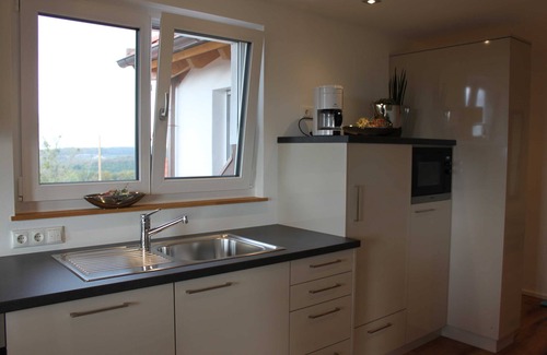 it is the mix of style and ambience combined with a wonderful view that will make your stay in our exclusive apartment unforgettable Enjoy the fire in the stove with a clear view of the Black Forest and the Vosges The spacious apartment offers them and their family enough space to relax and feel good. The apartment has 2 bedrooms, a bathroom and a large living, dining area with integrated kitchen. The apartment is equipped with very high quality furniture and electrical appliances. From the comfortably furnished balcony you can enjoy the wonderful view of the Black Forest and the Vosges. The apartment is located off the main road - thus peace and relaxation is guaranteed.