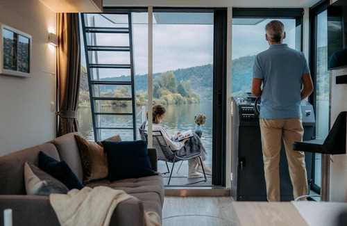 Floating vacation apartment on the Saar - mobile home, shower, WC, 2 bedrooms | Apartment in Merzig
