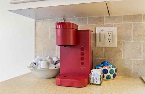 the main floor features an open floor plan with a galley-style kitchen, an elegant lounge, and a spacious dining table, creating the ultimate hang-out space for your group Whip up delicious meals in the modern yet charming kitchen, fully equipped with stainless steel appliances, granite counters, and a gas stove. Most kitchen essentials are provided; just bring your seasonings and ingredients. Spill something on your clothes? You'll find an in-suite washer and dryer for your convenience.