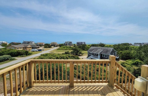This beautifully designed home offers everything you and your family could ask for in a vacation getaway. It is a short walk to the beach on a quiet, dead-end street. It has several spacious sundecks where you can enjoy ocean views and a rooftop observation deck where you have a spectacular panoramic view of the ocean. You can watch both sunrise and sunset from the screened porch. Whether relaxing by your own private pool or melting away your troubles in the hot tub, this magnificent and comfortable home has it all. RELAX AND ENJOY.