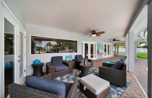 Enjoy the ultimate Southwest Florida vacation in this luxury 4-bedroom, 5-bathroom waterfront home located in the prestigious McGregor Boulevard area of Fort Myers. Perfect for families and groups, this spacious retreat features a private heated pool with a waterslide, hot tub, outdoor dining area with grill, and direct Gulf access, bring or rent a boat and be on open water in minutes. Inside, you’ll find four comfortable bedrooms, each with its own en-suite bathroom, sleeping up to 12 guests. The home offers a fully stocked kitchen, smart TVs, fast Wi-Fi, washer and dryer, and a fenced backyard ideal for kids and approved pets. Just a short drive to Fort Myers Beach, Sanibel Island, and local attractions like the Edison & Ford Winter Estates and Downtown River District, this home combines comfort, convenience, and fun for a memorable Florida escape..