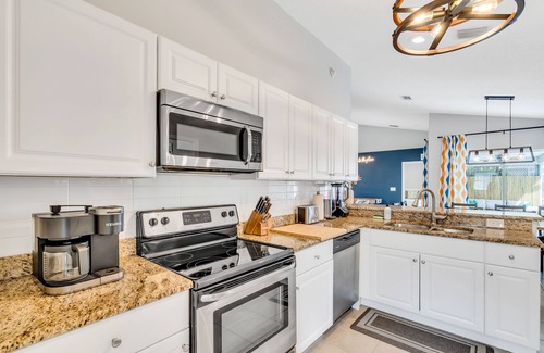 ☀ fully stocked kitchen with stainless steel appliances, airfryer, waffle/pancake maker, keurig dual coffee maker, electric kettle, toaster, blender