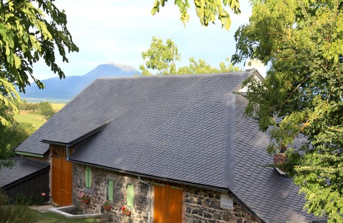 Old farmhouse built in local stone (basalt), slate roof.