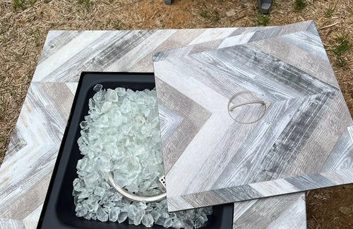 -outdoor sectional and additional seating, fire pit, and giant games for outdoor activities