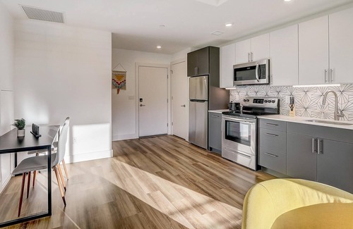 this apartment has everything you & your guests need to enjoy your stay in philadelphia! in the kitchen, you'll find beautiful appliances, a keurig coffee maker, and basic cookware to cook simple meals for a cozy night in! there's free wifi!