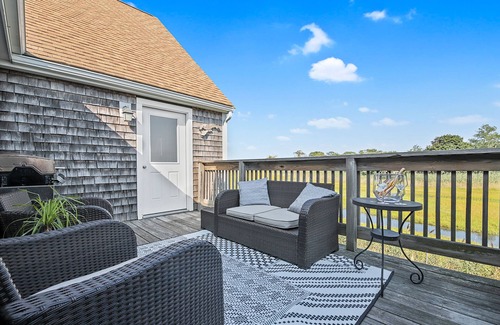 Spacious and clean renovated apartment minutes to the beach and marina! Newly furnished unit and refinished kitchen. This comfortable home offers 2 very large bedrooms with queen beds, large closets and beautiful views. An oversized loft on the second level is great for kids or adults with 4 twin beds. The living room is perfect to relax and read or look out to marsh views. There is a large private deck with seating. Full bathroom with shower. Private entrance..