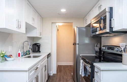 Tastefully updated 3 bed, 1 bath apartment just steps away from TD Park (Toronto Blue Jays spring training facility) with quick and easy access to the Pinellas Trail, Downtown Dunedin, and short drive to Downtown Clearwater, Honeymoon Island, and world famous Clearwater Beach! This cozy space is equipped with everything you will need for a relaxing vacation with your family. Bring the bikes!.