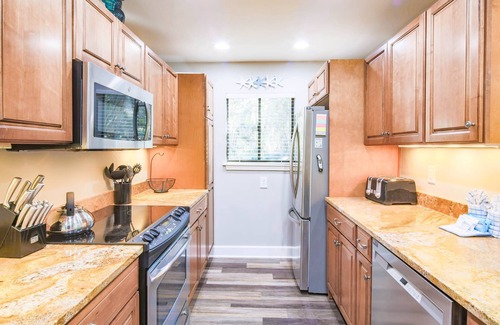 Book this tranquil & serene vacation home now! Conveniently located in the heart of Sea Pines Plantation, Calm Villa Sea Pines is the ideal family vacation home. This completely renovated, 2-story, end unit villa within the Inland Harbour community is perfectly situated across Lighthouse Road from the bike path, providing excellent access to all of Sea Pines’ incredible amenities & activities. You will be just a short walk or bike ride away from The Shops at Sea Pines Center (500 feet), Harbour Town (1/2 mile), and the complimentary Sea Pines Beach Club (just over 1 mile). Guests of Calm Villa are welcome to swim in and play tennis on the Inland Harbour community pool and tennis courts. With new, upgraded furniture, luxury vinyl plank flooring and large smart TVs throughout, Calm Villa provides a relaxing, family-friendly retreat.
