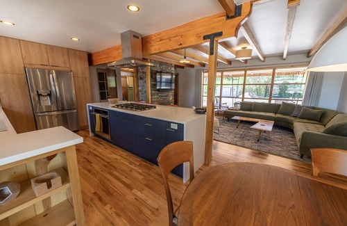 the newest addition to pinon vacation rentals portfolio McNiffityville is a step back in time to mid-century. Fun and eclectic! You will love the open concept kitchen/living, large picture windows and the covered back patio.