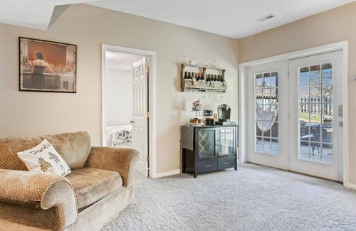 Come for the fun to a spacious 1st floor walkout basement/apartment just 1 mile from Busch Gardens & Water Country and just 3 miles from Colonial Williamsburg & William and Mary. You'll have a large pool table, bar area, private entrance, private hot tub & fire pit, coffee bar, and free parking in a quiet neighborhood. The space is part of our home (the bottom floor) w/ private entry - it is not shared space. The VRBO filter 'entire home' refers to the entire apartment, and is more than a room or shared room (the other options on any listing).