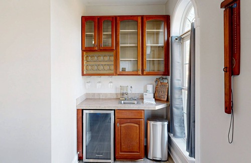 for those needing to work remotely, there's a private work area in the main-level bedroom, offering a quiet and comfortable space