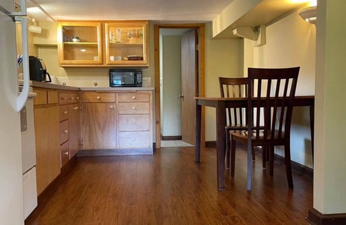 Furnished one bedroom basement suite with private entrance. Great location, less than 5 minute easy walk to town. Suite has natural light with mountain views. Quiet neighborhood. Recently painted. Fully furnished, clean and cozy suite perfect for a single person or a couple. Need anything extra let the host know. Owners live on premises and can provide info on area if needed. Mudroom in the suite perfect for bike and golf club storage. Please note the ceiling height in the kitchen and bedroom is 6’1”. The livingroom and mudroom ceiling height is 8’.