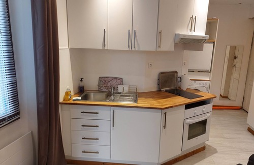 a bed of 180, equipped kitchen, bathroom with shower and toilet