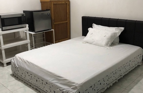 private and comfortable, peaceful , safe and secured , the studio-type room has a kitchen area, hot and cold shower, wifi internet connection, air conditioner, refrigerator, microwave oven, electric stove, electric kettle, cooking basics, queen size bed with mattress, beddings and pillows, cabinet, desk, dining table and chairs.