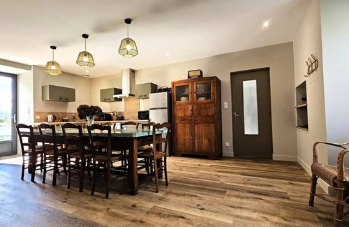 accommodation: this cottage is located equidistant between limoges and brive, easily accessible via the a20 motorway At the entrance, a cocooning area invites you to relax, with a banquet. Inside, you will discover a fully equipped kitchen/stay, perfect for sharing warm meals. The adjacent, welcoming living room features soft sofas, a coffee table and a large flat-screen TV. A spacious terrace, accessible by the kitchen door, awaits you to fully enjoy sunny days. The house includes a modern bathroom, equipped with an Italian shower with a wall seat, as well as a shared toilet. The night corner, located on the same level as the bathroom, consists of three bedrooms: the first, furnished with a bed of 160 cm, the second with a bed of 140 cm, and the third has two beds of 90 cm.ALL INCLUSIVE Nestled in a farmhouse including a barn, a pig house and a shed, this independent house has been completely renovated with great taste. It is located in a small quiet hamlet. You will enjoy its beautiful terrace, which opens onto a closed garden, perfect to relax and enjoy the sweetness of living. In addition, a nearby secondary residence adds to the appeal of this friendly place.And if the heart tells you, you will have the opportunity to explore the farm with a guide, which will allow you to observe cows, pigs, sheep, as well as animals in the lower court such as chickens, guinea fowl, turkeys and rabbits. You can also walk quietly on the trails or in the forest looking for mushrooms and other treasures of nature. price includes: sheets,toilet linen,linen (torchon, bath mat, tablecloth),household packageheating,drink,electricity