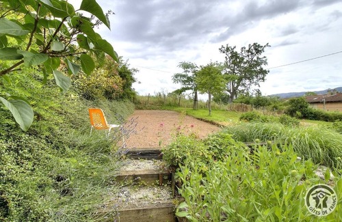 In the cherries area (Lyonnais region) self-contained gite adjoining owners' home. Ground floor: garage. 1st floor: kitchen, living room, alcove with lounge area, loan of mobile phone (deposit required). 3 bedrooms (double room, 2 connecting twin-bedded rooms). Bathroom, WC. Outdoors: balcony with views of the Coteaux du Lyonnais countryside (fruit trees are very picturesque in spring time), small unclosed & sloping garden, paved area (football table) to front. Small enclosed terrace shaded by wisteria at the back (direct access from living room). Tasting during the cherry season. Charge for pet : 6€/day/pet..