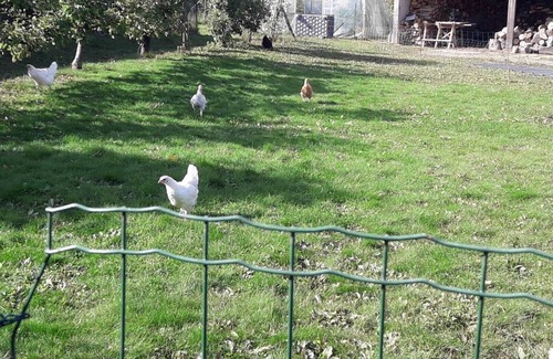 House with 2 gites, ground floor + floor. Enclosed grounds, terrace with garden furniture and barbecue. Living room with wood stove, living room/kitchen area. 1 bedroom (1 double bed) 1 bedroom (2 single beds) 1 child's bed and high chair, bathroom, separate wc. Electric radiators. Breakage deposit. Large lawn with shared swing, parking in front of the cottage. Pleasant and relaxing space. (stays for tourist purposes only, no companies and workers).