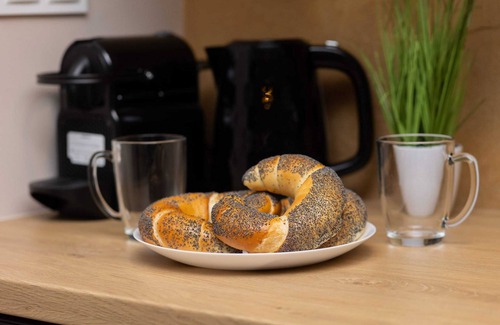 the comfortable sleeping arrangement includes a double bed in the bedroom and a double sofa bed in the living room It is ideal for four people, which makes it a great choice for families or groups of friends visiting the capital. It is an excellent choice for travelers who do not accept compromises in terms of style and comfort. Guests working remotely will also find a comfortable place to work with a laptop, and thanks to a fast internet connection, they do not have to worry about fulfilling their daily duties. The sunny terrace belonging to the apartment provides a great place to spend time with a cup of aromatic coffee. The kitchen, open to the living room, is fully equipped with all necessary appliances and utensils. A welcome set of free toiletries, towels and linen reduces the stress of packing for your holiday.