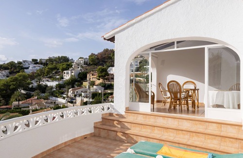 House "Gabriele", 3 storeys. 3 km from the centre of Moraira, in a quiet, sunny position, 3 km from the sea, 3 km from the beach. Private: property 800 m2, well-kept garden, swimming pool kidney shaped (28 m2, depth 120 - 200 cm, seasonal availability: 01.Jan. - 31.Dec.). Outdoor shower, garden furniture. In the house: washing machine. Parking. Shop 1.8 km, supermarket 1.8 km, restaurant 2.2 km, bus stop 3 km, sandy beach "Playa L'Ampolla" 3 km. Please note: car recommended. Not suitable for children under 6 years.
