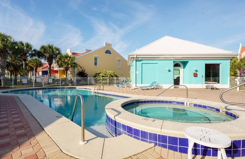 the colorful banana bay complex is set right on the water at perdido key, with private access to the white sands of the intracoastal waterway and a nearby marina