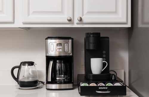 featuring king size master, top rated mattresses, smart tvs in every room, light blocking shades, a fully stocked kitchen & well-equipped game room High speed WIFI and workstation in master. Start your mornings right with our fully equipped coffee & tea station..