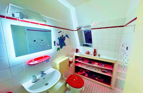 the apartment is a vibrant tribute to retro gaming culture, with decor inspired by pixel art, iconic game characters, and vintage gaming memorabilia Lounge in comfort as you battle it out in multiplayer tournaments, relive your favorite adventures, or discover gems from a bygone era. The curated collection of games and consoles promises hours of fun for gamers of all ages and skill levels.