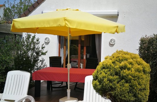 hiring **** independent rdc for two people, 35 m2 seaside, independent terrace 20 m2 without opposite with awning e and garden full south west corner living room tv sofa, bed nice quality 2m x180 done. (no need to take sheets or unfold sofas! ) separate toilet and bathroom. Independent entrance, very well insulated, no noise. Beautiful well equipped kitchen. parking for your car inside property, locked.