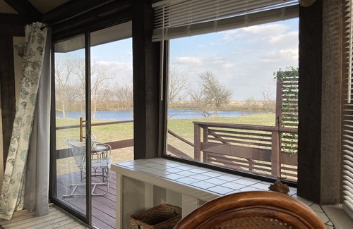 The Gazebo is shaped like it's name and has windows on every wall that lets in light and the view of the lake or horses, all around. Sit on the front porch listening to the sounds of birds or with a good book, sipping wine as the water lulls your troubles away. The water is low due to the draught but the Gazebo is still a nice place to stay when you visit our area..