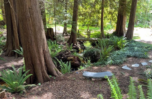 we would love for you to utilize the garden area around the creek behind the main house There are some nice meditative spots including a cement bench near the creeks edge. This is also where your fire pit is located and the Hot Tub.