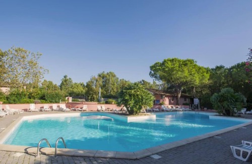 Holiday village "Gineprino". In the resort Marina di Bibbona, 5 km from the centre of Bibbona, 600 m from the sea, located by a road. For shared use: park 3 ha (fenced), natural garden, swimming pool (seasonal availability: 15.Apr. - 19.Sep. pool opening hours: 10:00-13:00 and 15:00-19:00). Unconventional pool shape. Shower/WC in the pool area, children's pool, outdoor shower, table tennis, volleyball, barbecue, children's playground. In the complex: restaurant, bar, WiFi, shopping facilities, washing machine, tumble dryer (for shared use, extra), bicycles available (extra). Parking at 100 m on the premises. Sandy beach 800 m. Nearby attractions: Bolgheri 5 km, Cecina 10 km, Castagneto Carducci 15 km, Vada 20 km. Please note: Loading and unloading of baggage is possible at the holiday house. The photograph shows a typical example. Additional accommodations can be booked. WIFI available in the common areas. Compulsory to wear a swimming cap. The parking (fenced) is located outside the resort (50 meters).