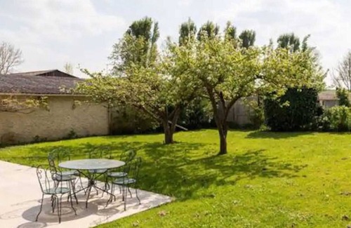 private enclosed garden of 200m² and terrace with garden furniture, deckchairs, charcoal barbecue