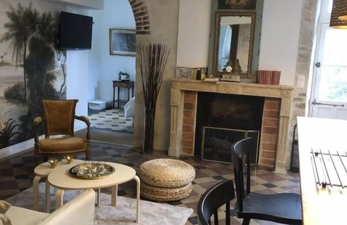 A 20-minute walk from the historic center of Bourges, in a quiet area, your City Break is set up on the independent and very bright ground floor of a beautiful bourgeois residence - You have a secure and private exterior with 2 small terraces and a lawned area - Private outdoor parking - You will be seduced by the charm and undisputed comfort of this accommodation combining noble materials such as stone and wood with contemporary decoration - Ideal for a couple on a short stay or on a business trip - Main room with lounge area and integrated kitchen area with dining island, double bedroom open to living room (no door), bathroom with very large walk-in shower, wc - Wifi - All easy access to shops and leisure .