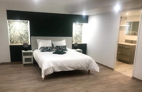 MAXIMUM CAPACITY (15 PEOPLE INCLUDING CHILDREN AND BABIES). Bright villa of 650m², on a fully fenced plot of 2000m². Ground floor: fitted kitchen (2 fridges, 1 freezer, hob with 5 gas burners, oven, dishwasher, microwave oven, etc.), dining/living room with open fireplace, 124 cm TV connected, Bluetooth speaker. Glazed relaxation room with sofa and armchairs. 2 bedrooms with 1 bed 160x200 each. Bathroom with 90x80 shower, bath and WC. Independent WC. Garden level: 3 bedrooms with 1 160x200 bed and private bathroom (shower and WC) each. Cot and baby chair. Upstairs: 3 bedrooms with private bathroom (shower and WC), 2 with 1 160x200 bed and 1 with 1 140x200 bed. Room with balneotherapy spa. 900m² garden with garden furniture, outdoor relaxation lounge. Secure private parking for 8 vehicles. All-inclusive cottage (energy charges, sheets, towels and end-of-stay cleaning) Magnificent villa located between dunes and fields, just 2.5km from Bray-Dunes beach (4min by free bus!). If you do not know the life of a border, Bray-Dunes will surprise you. The northernmost resort in France is side by side with our Belgian friends and it shows! In a pleasant natural setting made up of a preserved dune environment and a long fine sandy beach, Bray-Dunes benefits from many charms. Direct neighbor of Belgium, its wide open spaces and varied entertainment invite you to practice many family and sporting activities. The Plopsaland amusement park is only 6 minutes away by car! Close to all shops and bus stops. The Vélomaritime greenway, just in front of the villa, will allow you to make beautiful cycle rides in complete safety. 20min from Dunkirk (Carnival, 4 Days of Dunkirk), 40min from Ostend (B) and 1h10 from Lille. Calais, Cap Gris Nez. Cape Blanc Nez. Enclosed space, Washing machine, Dishwasher, TV, Bath, Tumble dryer, Sheets provided, Microwaves, Baby bed, Open fireplace, Spa, Linen provided, internet or wifi, Terrace, Garden, Animals accepted, Charm, Society , Individual house. Option to be paid on site: Animal supplement per stay: €30. Unless stated, services such as cleaning, bed linen, towels etc. are not included in the price of this rental. If pets are allowed (information in the advertisement), charges may be applicable. Only equipment mentioned in this advertisement are present. Equipment not mentioned are not considered to be present.