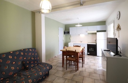 you benefit from shared enclosed grounds, a private terrace with garden furniture and barbecue Living room with kitchen area with flat screen TV, 1 sofa bed for 2 people, 1 bedroom with 1 double bed, bathroom with toilet. WiFi internet access. Geothermal heating included. Prices all charges included. Drinking water supplied in bottle.