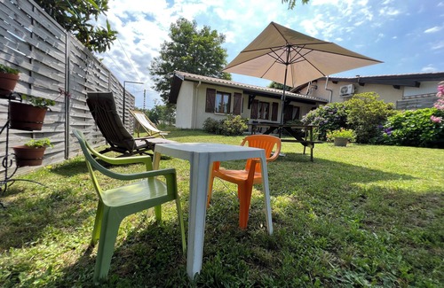 30 minutes from bordeaux and the arcachon basin and less than 3 hours from pyrenean mountain ranges, with a capacity of 4 people possible 5 (depending on condition), ideal for 2 adults and 3 children house adjoining that of owners with independent entrance in a fenced park of four thousand meters, will allow you to forget your usual routine