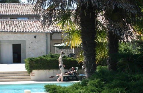 the single-storey gîte is located on an estate that has its origins in the 13th century The estate houses a main building, where the owner stays, and a renovated 18th-century building with 2 linked gîtes, each with its own entrance. Relax with a cup of coffee on your private patio or soak up the sun by the shared pool. The park garden with beautiful is ideal for balmy summer evenings. enjoy!
