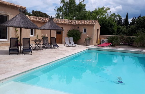 Villa, new equipment. Large bay window air-conditioning unit. Very delightful exterior with pool house, pool aesthetic and massage weekend holidays (except July - August - September). Don't have time to book a whole week? There's no problem. Stays on the weekend or during the week... 2... 3... 4 nights...The choice is yours. Take a moment for yourself, with your partner, family or friends. Two 75m2 holiday cottages that can accommodate up to 8 sleeping arrangements, at the foot of the regional natural reserve of Alpilles... An exceptional site to gaze upon the fauna and flora but also to our Provencal farmhouse and authentic picturesque small villages. Our rural landscapes will renew you! Discover our culture, our traditions... With a little luck you can contemplate our famous Arlésiennes (of which you have heard about but never seen). From 30° the cicadas that we expect every year with impatience and which enunciate the heat awake. They sing so hard that sometimes some of the tourists ask how we bear it. Then we respond that Provence without cicadas is not Provence! You'll feel the lavender, rosemary and thyme... You will like our small serving dishes simmer (tian, pissaladière, artichoke with the barigoule), aioli, pistou soup... Fruit and vegetables sun-gorged (melon, strawberries, apricots, tomatoes...). Not to mention the house's courgettes! Attention taste buds! No need for car...you will have the option to leave walking directly from the gites. Otherwise, horseback riding and bicycles are available at Mouries (see link). Rent the house for a few nights, choose the option suitable for you. The gites are semi-detached and can accommodate 2 families (150m2, 4 bedrooms, 8 sleeping arrangements). Do not hesitate to take an aesthetic treatment or a massage..