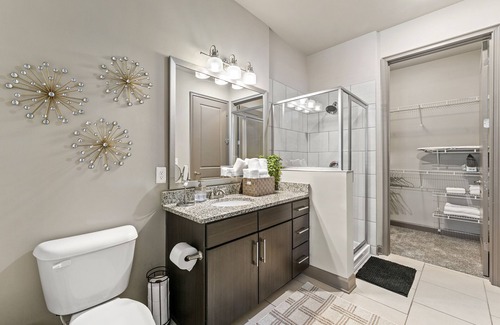 Enjoy a stylish experience at this centrally-located place. Nestled right in Atlantic Station with shops and restaurants within walking distance. The Mercedes Benz Stadium is 2.9 miles away. Piedmont and Grady hospitals 1-3 miles away for traveling medical personnel. The property is equipped with a workout facility, swimming pool, fire pit, and a beautiful sky deck with a city view..