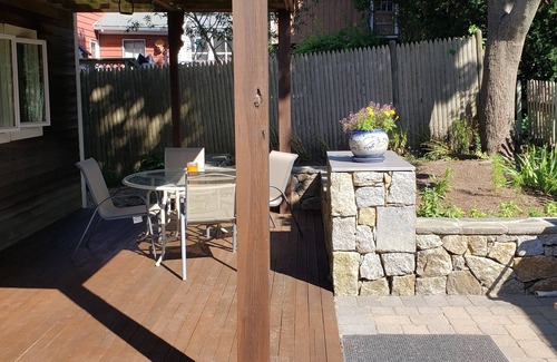 apt has a full kitchen, as well as back deck w/ bbq grill, and table with 4 chairs for outside dining for apartment use only. There is a full bath with washer and dryer. We have a few beach chairs for use along with some beach toys and a stroller for carting stuff to the beach. It is an easy walk to the beach (6/10 mile exactly) If you have a lot of gear, someone could drop off the family and then walk down to meet up at the beach. *** See below about new beach parking info for non-residents if you choose to park at the beach.