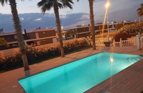 gorgeous, lovely, uniq and spacious villa with large privet pool and sunbathing around pool area in the best location possible in gran alacant close to everything, supermarkets ,( lidel, mercadona, aldi, dia), restaurants, walking area and the beach,
