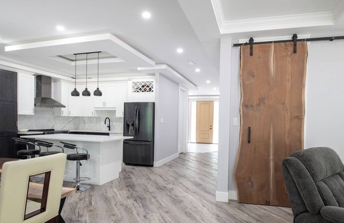georgian dream is a new build and is a family dream home The ceilings are absolutely incredible, fully lit by LED multi-lighting systems, large windows, massive tree-line and ridge-line, the furniture , beds and bedding add a soft touch. A lot of natural elements are brought into the home and it is styled by renowned Milana O, who designs in '3s'. The main hall is a jaw-dropping 25ft long with 3 large and spacious bedrooms off the main hall, including a large 4-piece bath area.