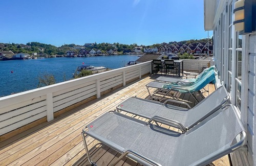 Great cottage with location on a beachfront property on the island of Flekkerøy. Beautiful view of the fjord. 50 m2 large open terrace with good patio furniture and a barbecue. Great waterfront bridge facility shared with N36328 and N36329. Child-friendly swimming spots and good fishing from land or boat. 15 km to Kristiansand with many attractions. For example, take the whole family on a trip to the animal park in Kristiansand or the Agder Nature Museum and Botanical Garden. Neighbor: 25 m.
