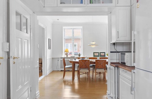 travel to the mussel town of denmark, located on the limfjord The large and bright vacation home offers you and your extended family or a couple of friends the ideal vacation home. Enjoy the pleasant rooms that invite you to cook, eat and relax together and fill the rooms on the first floor, which are characterized by high ceilings and double doors, with life.